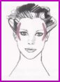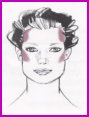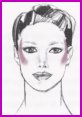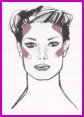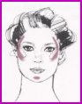 Bij een hoekig gezicht breng je de rouge als volgt aan: