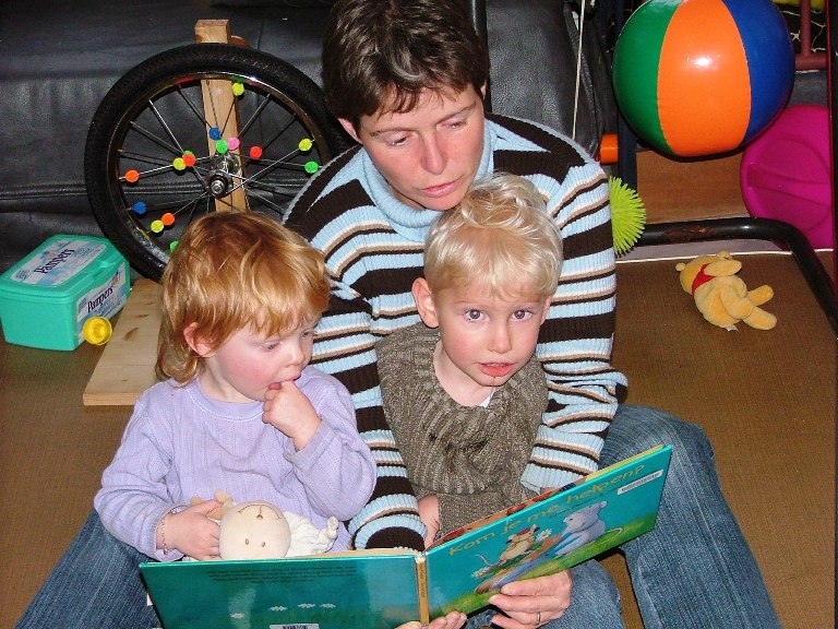 Bij mamma op schoot, op de mat, samen met Daan een boekje lezen. Dat is toch wel een favoriete bezigheid van Lotte. Alle boekjes zijn leuk, vooral de nieuwe (van de bieb).