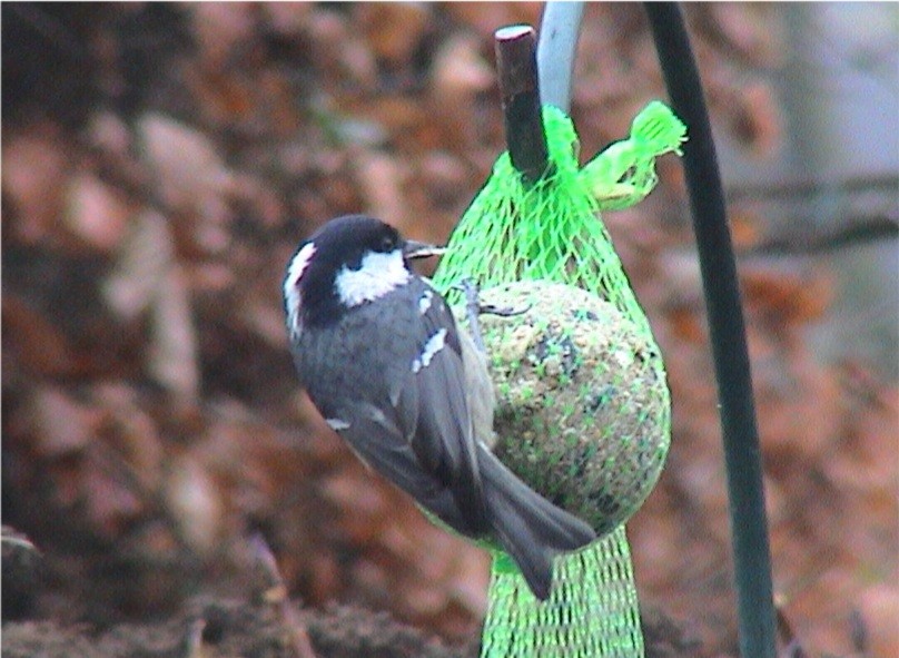 Zwarte Mees Het Zwarte Mees heb ik pas na acht jaar voor het eerst in onze tuin gezien. Dat komt omdat dit een bosvogel is en eigenlijk zelden in tuinen te zien is. Maar deze vogel blijkt ook een 'invasievogel' te zijn. Dat betekent dat in sommige jaren deze vogels in grote aantallen naar Nederland komen om te overwinteren, meestal door slecht weer in hun normale overwinteringsgebied. En daardoor is hij dit jaar (2006) massaal in tuinen te zien. De Zwarte Mees heeft wel wat weg van de Koolmees en als je niet goed oplet zul je hem waarschijnlijk ook niet ontdekken in je tuin. Maar als je goed kijkt zijn er veel verschillen te zien. Hij is kleiner, heeft geen gele buik, geen stropdas, hij heeft een witte vlek achter op z'n kop en witte strepen in z'n vleugels. |