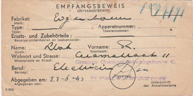 Riepke Jan (Harms) Klok, electrotechnicus te Groningen, later zelfstandig te Assen geb. 7-10-1905 te Den Andel (Baflo) overl. 18-7-2004 te Assen