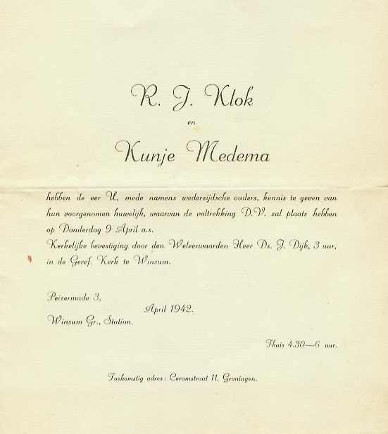 huwelijk 9-4-1942 te Groningen, kerkelijk te Winsum |