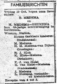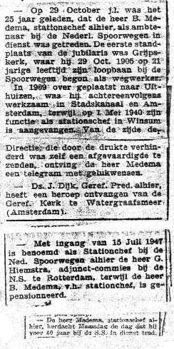 Bernardus Medema, "stationschef te Winsum" geb. 21-3-1884 te Adorp overl. 7-12-1975 te Assen