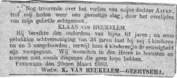 Klaas Wolters van Heukelem/Heukelum, landbouwersknecht/arbeider te Aduard geb. 27-3-1828 te Feerwerd (Ezinge) overl. 20-3-1889 te Feerwerd (Ezinge)
