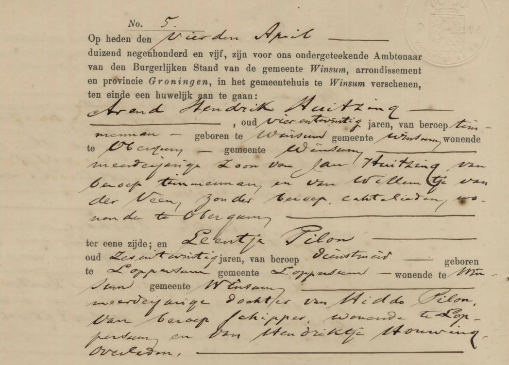 Hiddo (Jacobs) Pilon,schipper, binnenvaarder zoon van Jacob Pieters Pilon en 2e echtgenote Jantje Hiddes Toppen zie members.home.nl/h.oudman geb. 28-10-1836 te Loppersum overl. 15-10-1926 te Loppersum