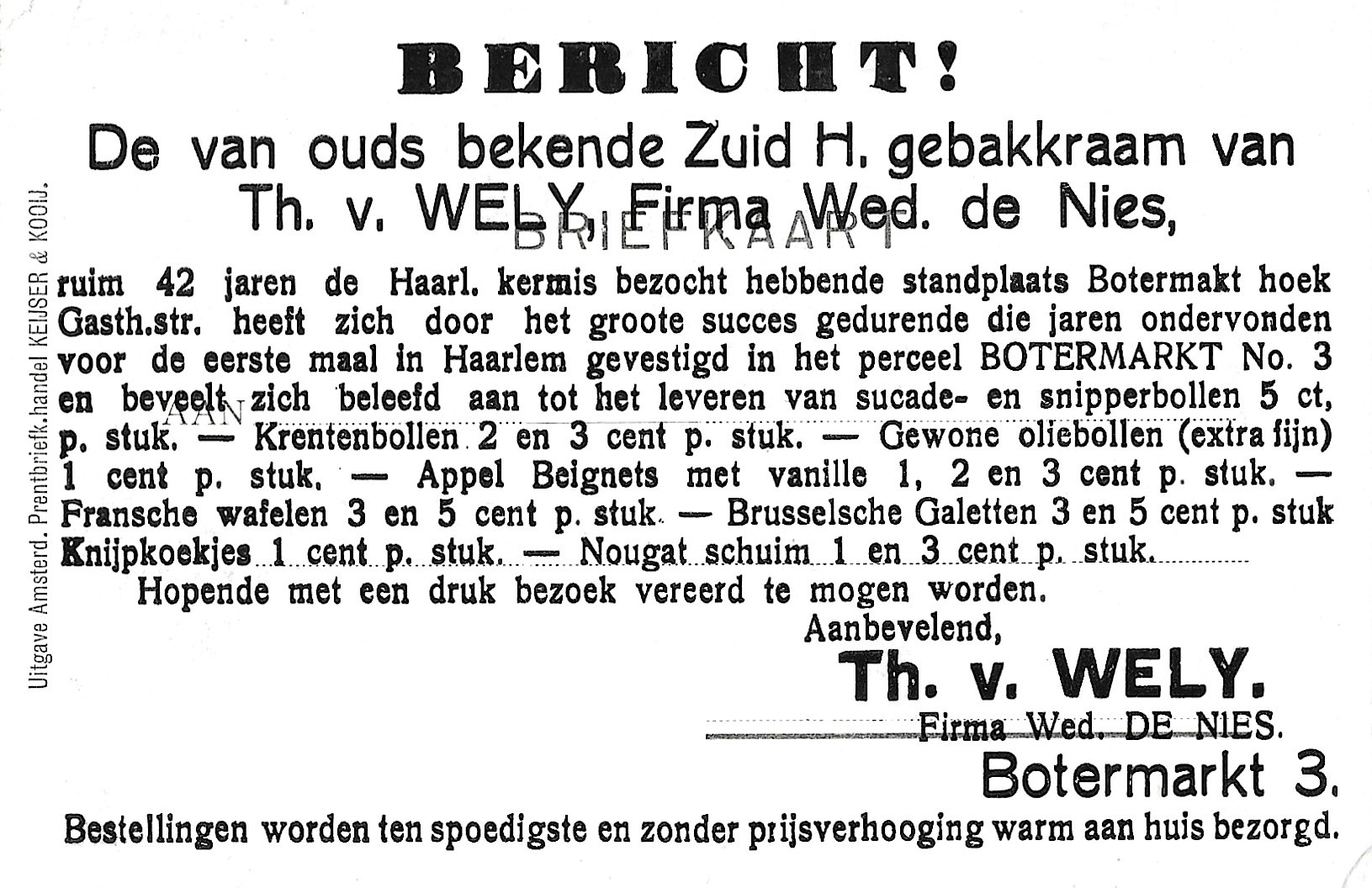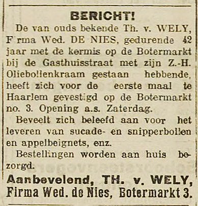 Haarlem tijdens de kermis als 'wed. W. De Nies'