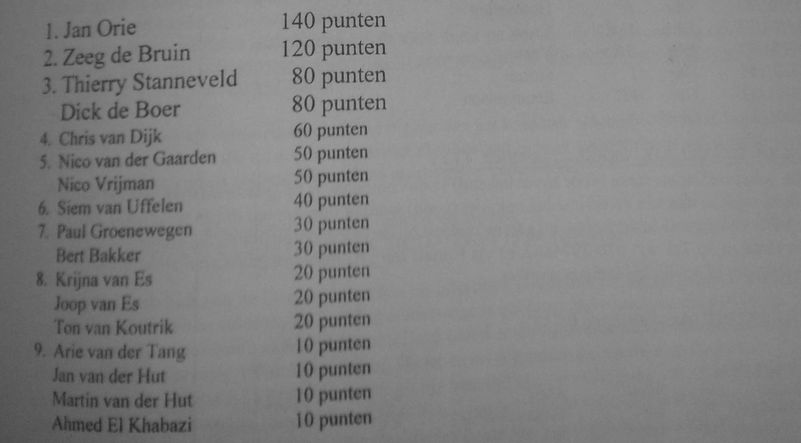 en mocht ook Bertus Haneveld een attentie tegemoet zien, daar hij de top drie juist voorspeld had.