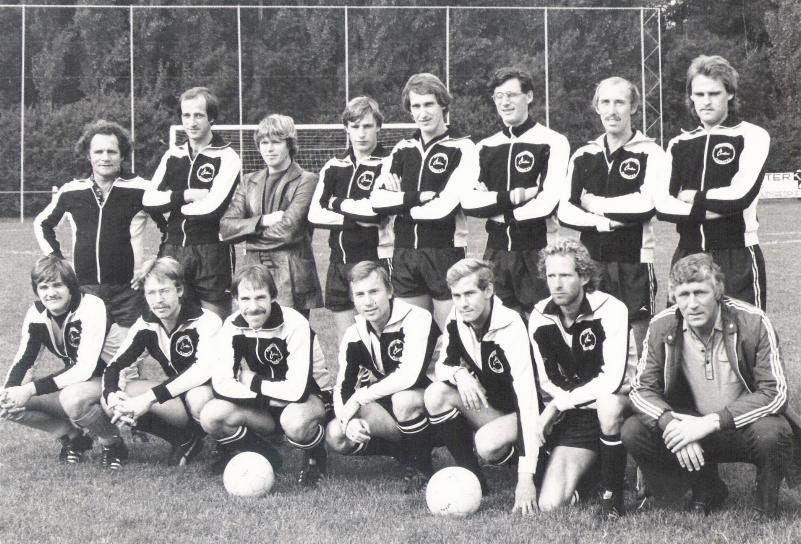 Achter (v.l.n.r.): Henk Verzaal (keeper), Wim Vink, Frans Krieger, Leo Noordijk, Hennie in't Veld, Martin Thoen