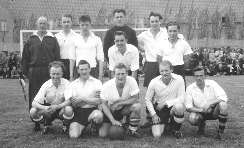 Hieronder een foto van het 1e elftal wat op 14 mei 1953 onder leiding van de trainer