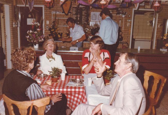 Achter de bar Joop Thoen, voor de bar (op zijn rug) Willem van der Eijk.