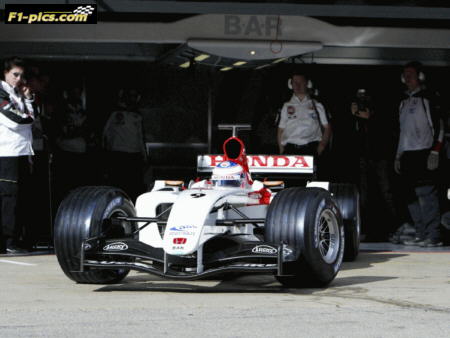 B.A.R. Honda driver Jenson Button of Britain test drives the B.A.R. Honda 006 new Formula One car following the team presentation at Montmelo's Circuit de Catalunya, near Barcelona February 1, 2004. (photo BAR)