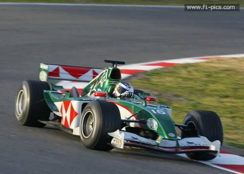 Austrian Formula One driver Christian Klien sits in his new Jaguar R5 car during testing at the Montmelo racetrack near Barcelona, Spain, January 21, 2004