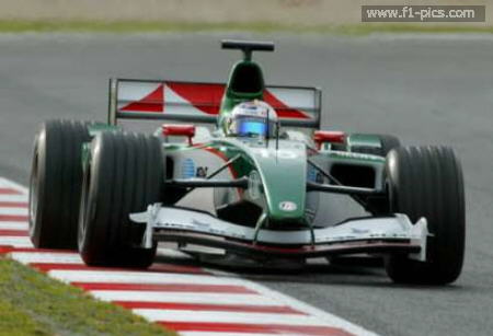 Austrian Formula One driver Christian Klien sits in his new Jaguar R5 car during testing at the Montmelo racetrack near Barcelona, Spain, January 21, 2004. REUTERS/Gustau Nacarino