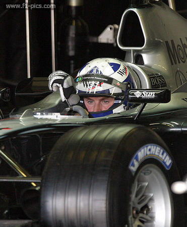 David Coulthard of Scotland sits in his McLaren-Mercedes before a Formula 1 testing session in Jerez, Spain, Friday, Jan. 9, 2004.