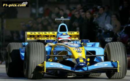 Spanish driver Fernando Alonso drives the R24, Renault's new Formula One racing car during an exhibition in Palermo, southern Italy January 29, 2004. REUTERS/Tony Gentile