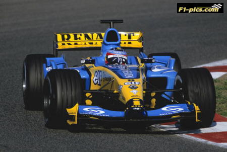 Fernando Alonso in the Renault R24 during its first run at Barcelona [Pic credit Renault] (16 february 2004)