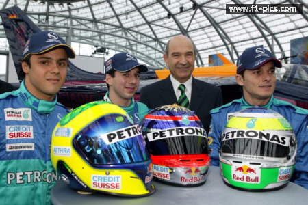 Monday January 12 Launch of the Sauber C23 at Salzburg Airport, Austria From left to right: Felipe Massa, testdriver Neel Jani, Peter Sauber and Giancarlo Fisichella. Photo www.sauber.ch