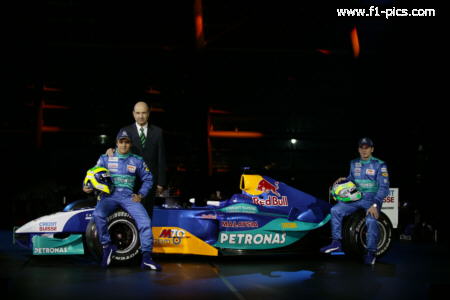 Monday January 12 Launch of the Sauber C23 at Salzburg Airport, Austria From left to right: Felipe Massa, Peter Sauber and Giancarlo Fisichella. Photo www.sauber.ch
