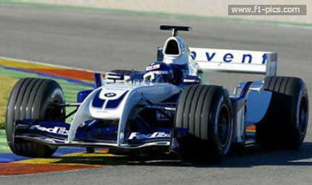 | Formula One driver Juan Pablo Montoya takes the new Williams BMW FW26 team car for a test drive during its unveiling at the Ricardo Tormo circuit in