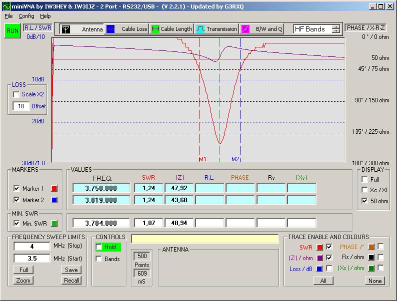 maximum noise-level, then apply a low power signal and tune for minimal SWR.