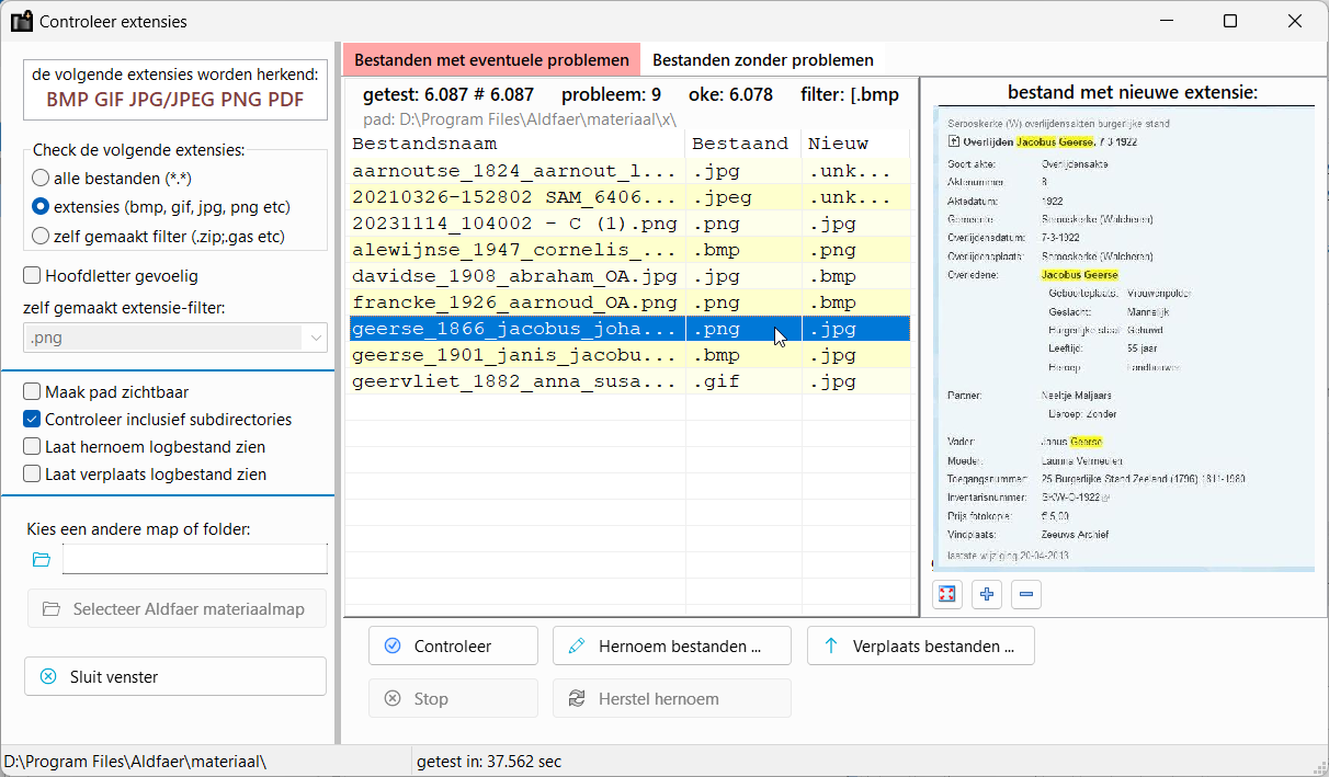 - het checken of de extensie wel correct is en niet per ongeluk is veranderd,
