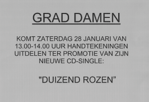 Jazeker, op Zaterdag 28 Januari 2006 was Grad Damen (en wie kent hem niet?) aanwezig bij Expert Meijer in Burgum om voor de fans z'n nieuwe single te signeren.