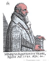 Henrik studied at Wittenberg, under Luther and Melanchton, and was one, or thé most influential man to introduce the Renaissance and Humanistic thoughts in Schleswig- Holstein. He could do so because, unlike his father who still was one of the fighting Rantzau's, he was the first bureaucrat, diplomat and maecenas of the family. Though still in armour, he carries a document instead of a sword on his pictures.