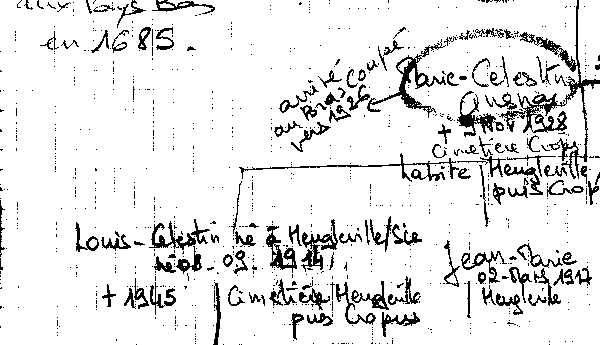 Afb. 1b: Detail Stamboom familie Quesnay te Cropus