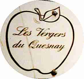 Waar het weggetje op een bredere weg uitkomt, staat een bord van de Vergers du Quesnay, een Appelboomgaard-bedrijf, waarschijnlijk met Cider-productie (foto's