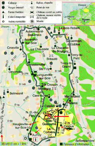 naar Bacqueville-en-Caux (zwarte pijl).