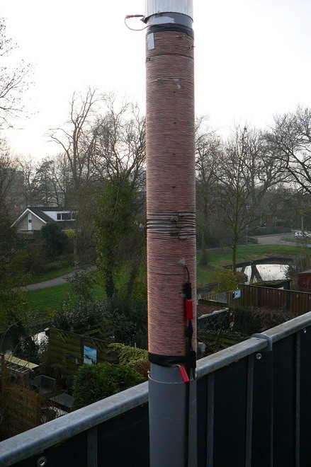 | Het leek zo leuk, .... maar na het aanbrengen van het mantelstroomfilter en de nieuwe 26,9 meter lange